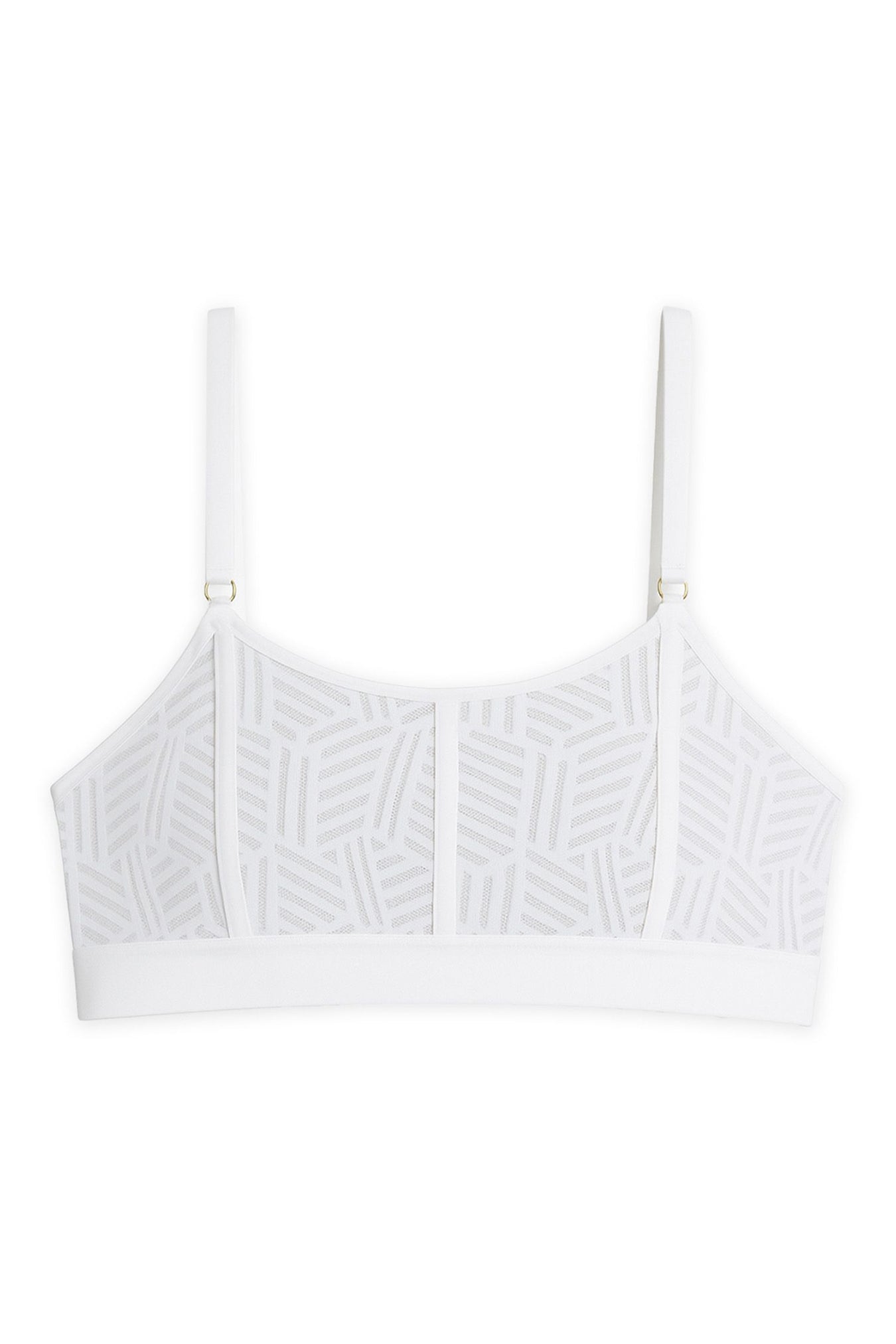 Refined, but far from ordinary. This elegant bralette features gold-plated hardware at the back and soft geometric mesh contrasts in front — a subtle blend of texture and structure. The wide elastic band beneath is a standout — exceptionally soft, smooth, and supportive, with a quality feel that sets it apart. Adjustable straps let you find your perfect fit. Thoughtfully crafted from the softest recycled polyamide, it’s a conscious choice that doesn’t compromise on comfort or style.