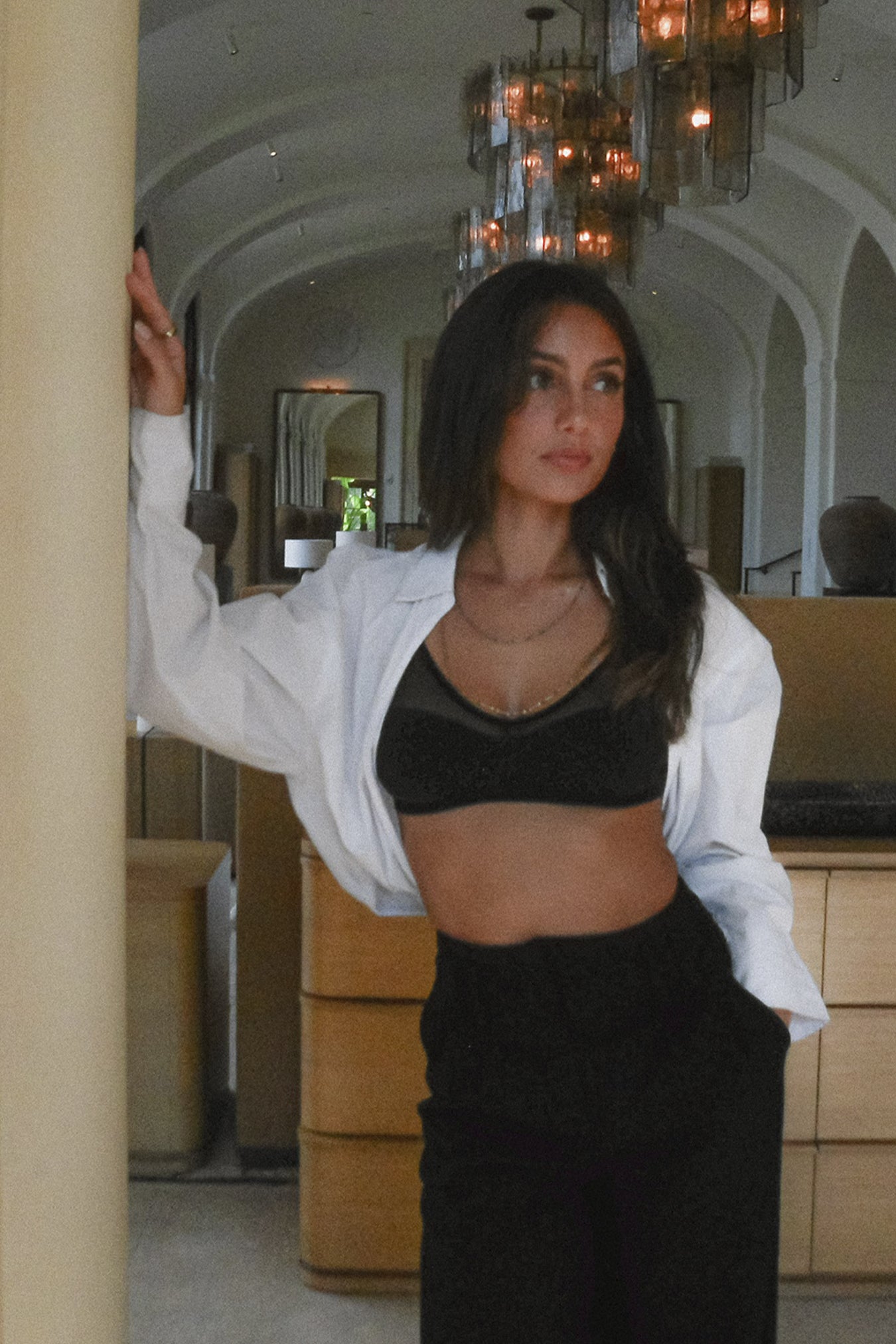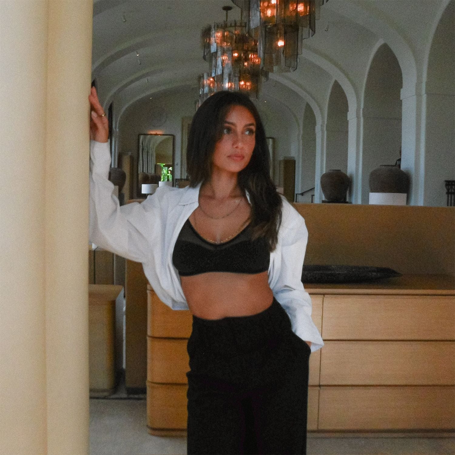 The Stella Scoop Bralette blends style, sustainability, and all-day comfort. Crafted from high-quality recycled fabrics, it features a bold contrast of solid and sheer textures. The wide elastic band beneath is a standout—exceptionally soft, smooth, and supportive, with a quality feel that sets it apart.