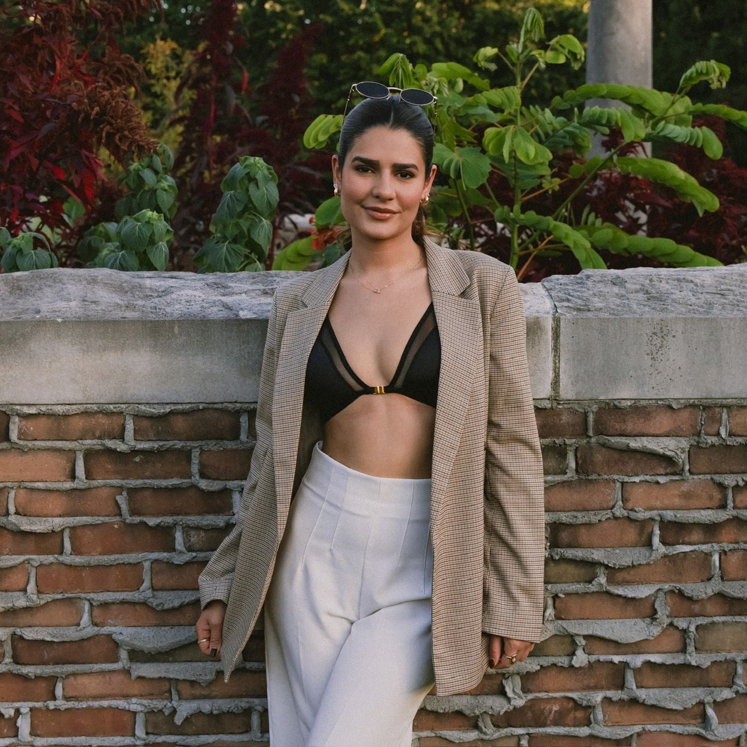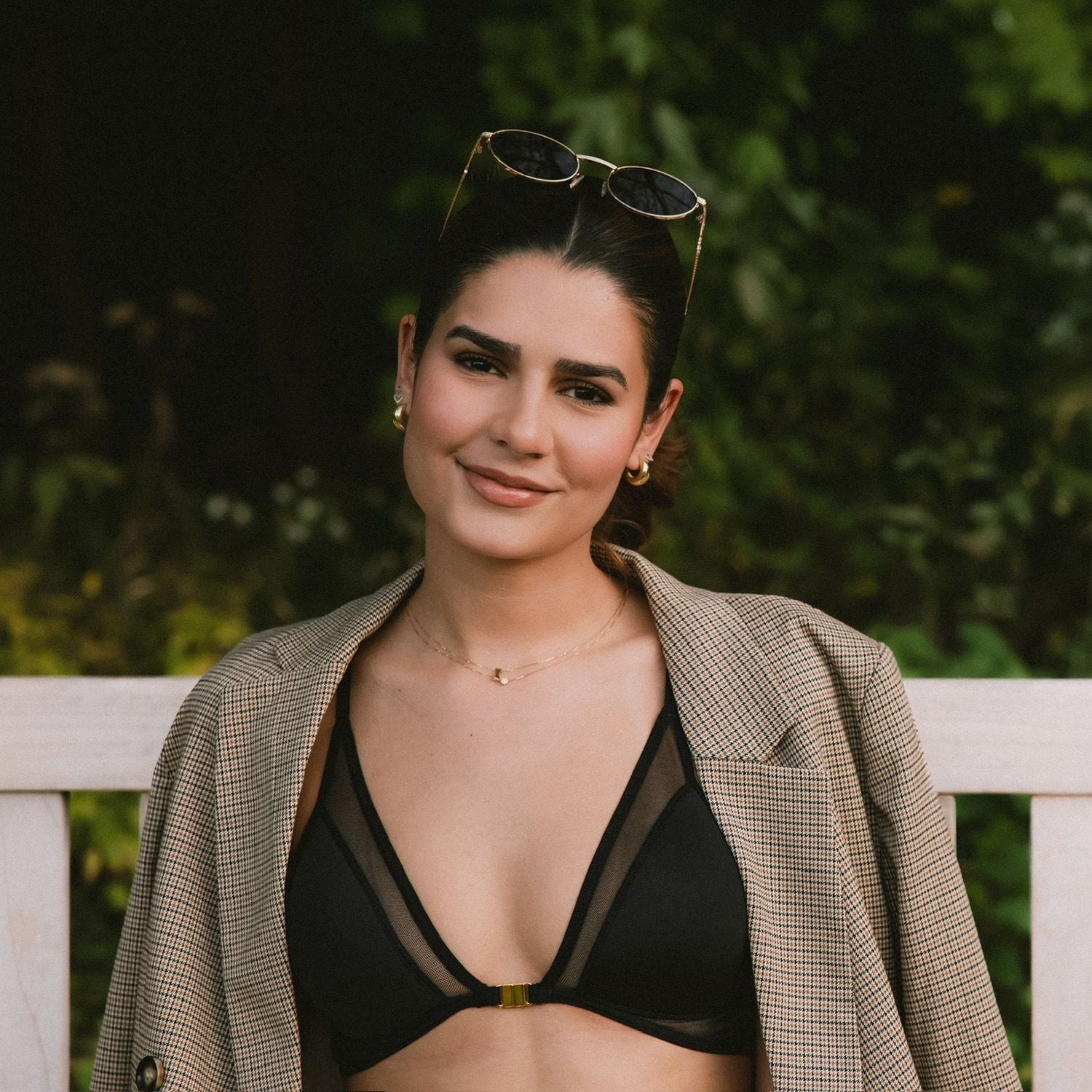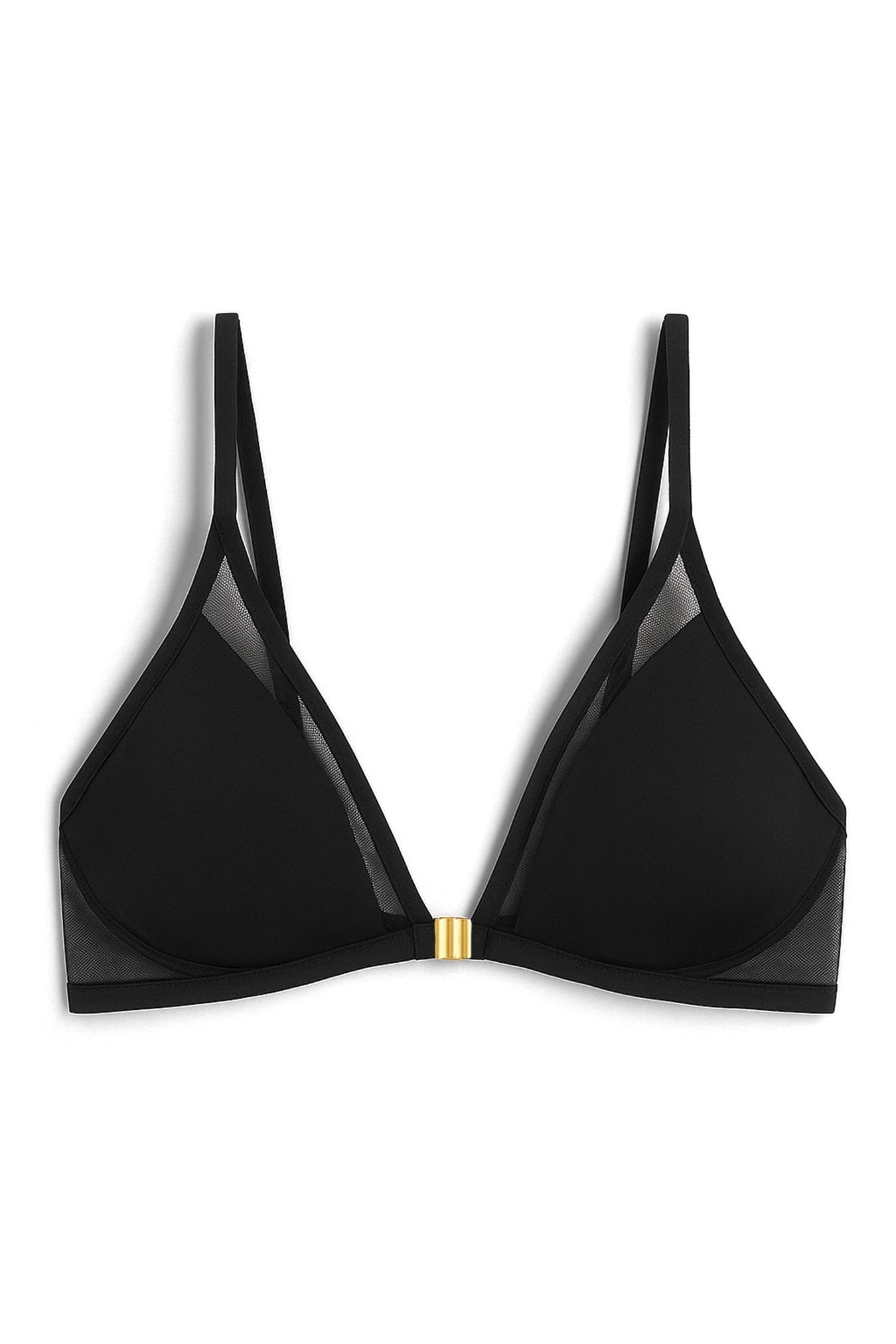The Stella Wire-Free Triangle Bra does the most by feeling like the least. No wires, no bulk, just molded cups that shape perfectly with a barely-there feel thanks to smooth high quality, sustainable fabric. The sheer mesh and gold-plated front clasp add a little drama (the good kind). It’s the piece you’ll reach for under a blazer, layered with something else, or worn as your everyday bra but with style. With a perfect fit, it offers comfort, confidence, and just the right amount of edge all in one.