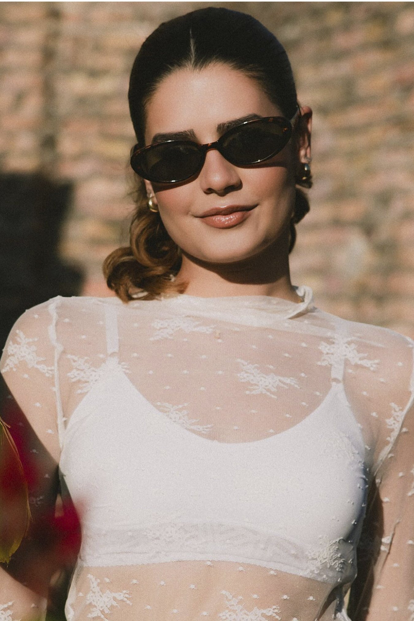 This bralette fits like it was made just for you! Its seamless, ergonomic cups hug your natural curves, offering perfect comfort and support. Gold-plated details on the straps catch the light, while the geometric mesh adds a sharp, modern edge. Crafted from high-quality recycled polyamide, it’s style with a conscience.